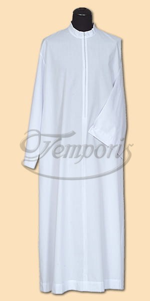 Alba kapłańska biała prosta ze stójką, zamek z przodu.