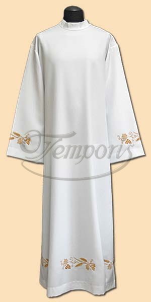 Alba kapłańska biała prosta ze stójką, zamek na ramieniu.