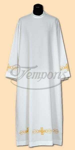 Alba kapłańska biała prosta ze stójką, zamek na ramieniu.