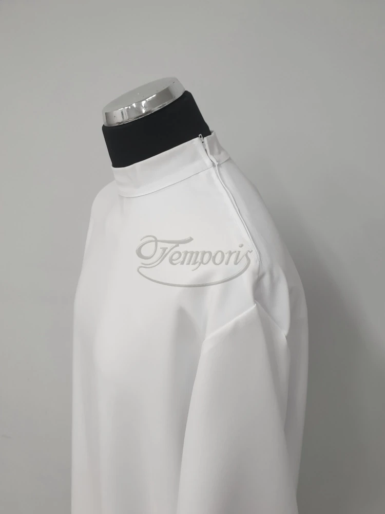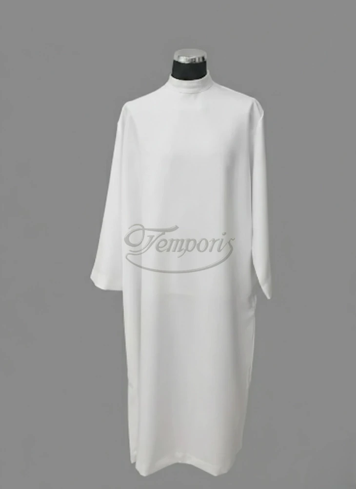 Alba kapłańska biała prosta ze stójką, zamek na ramieniu.