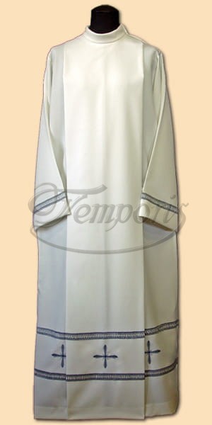 Alba kapłańska kremowa rzymska zakładka ze stójką, zamek na ramieniu.