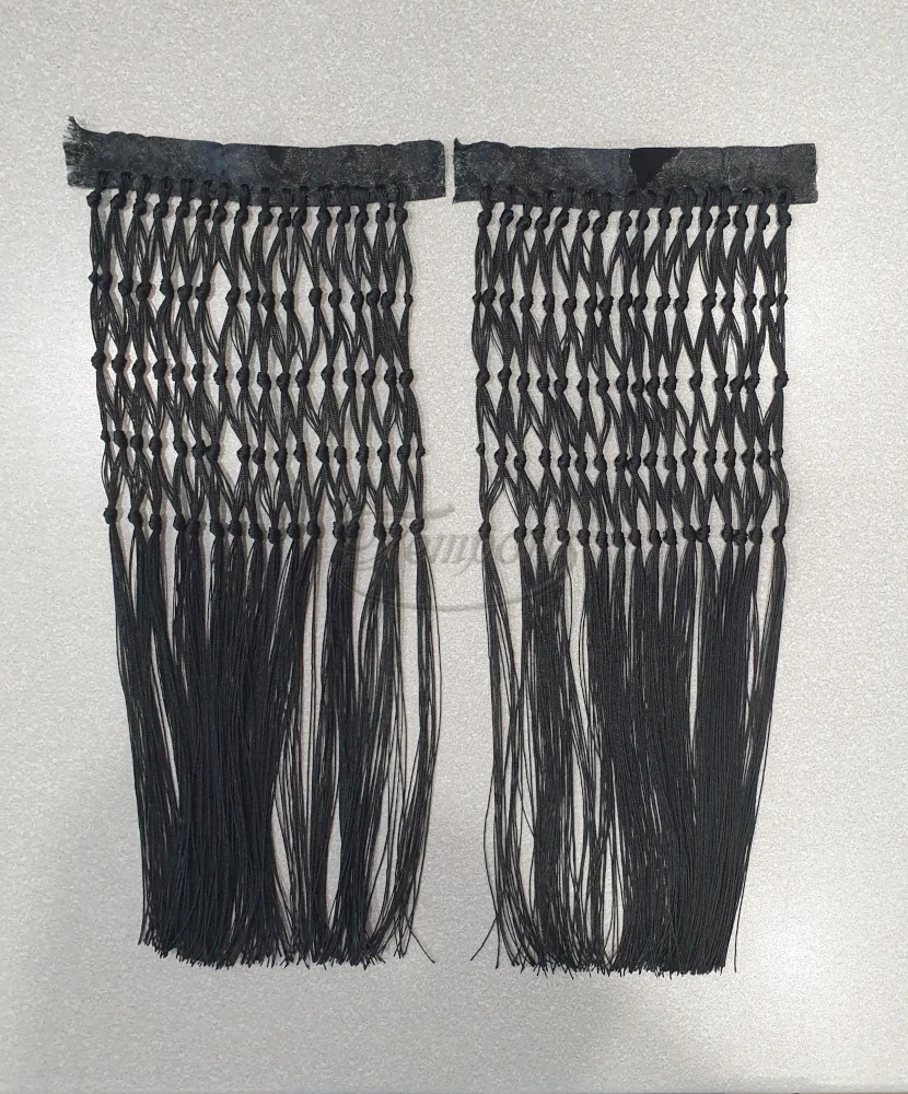 Frędzle plecione ręcznie nićmi z jedwabiu poliestrowego.