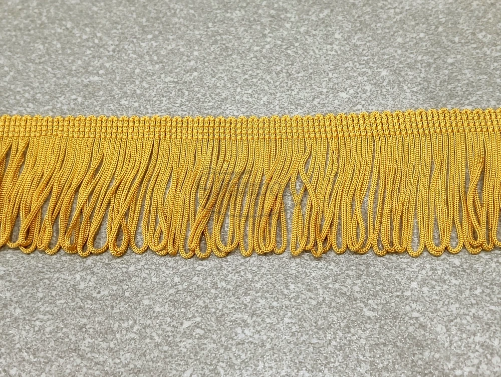 Frędzle proste wykonane z plecionki wiskozowej w kolorze miodowym.