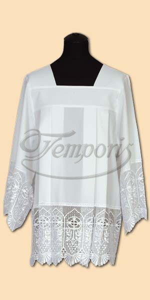 Na rękawach i na dole doszyta gipiura o szerokości 28 cm.