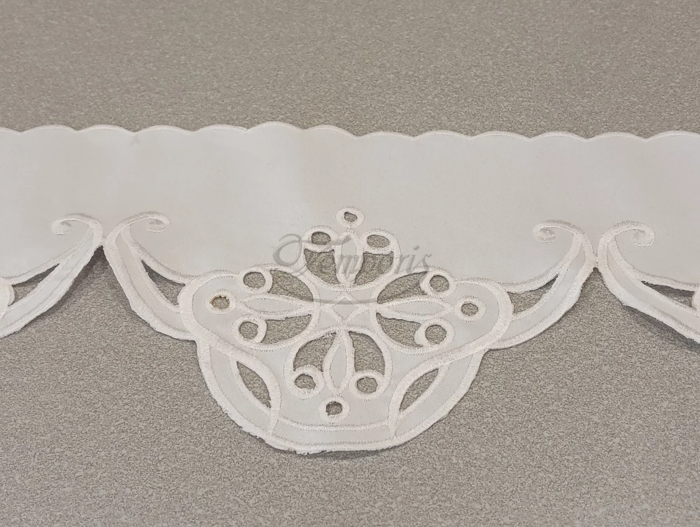 Wzór liturgiczny został wyhaftowany maszynowo na tkaninie obrusowej (100% poliester).