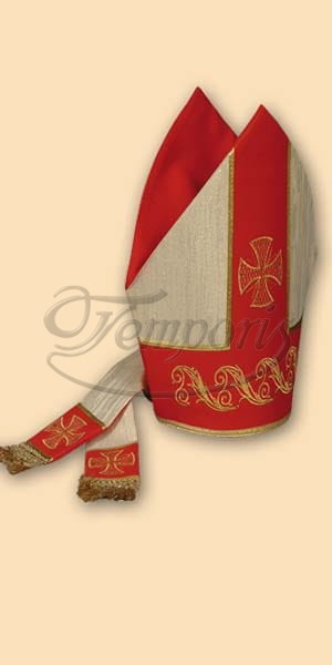 Mitra z haftem z tkaniny brokatowej/kolorowej we wzory.
