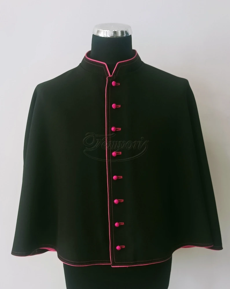 Mucet zapinany jest na guziki i haftkę pod szyją.