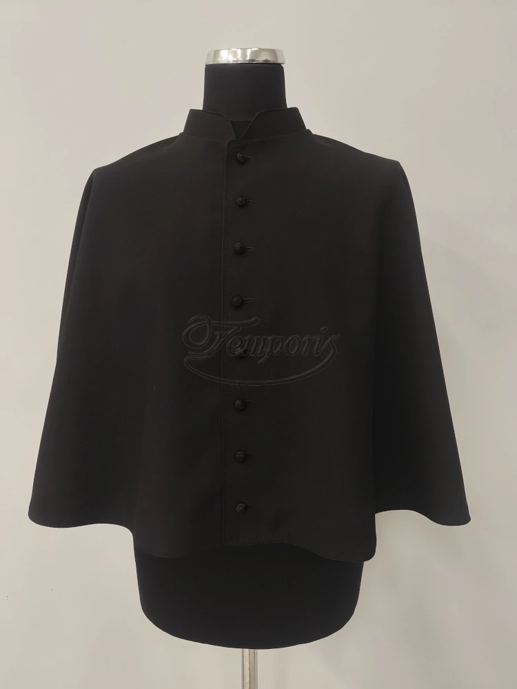Mucet zapinany jest na guziki i haftkę pod szyją.