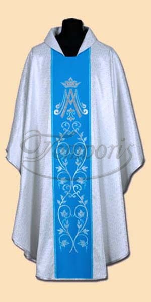 Wykonany z tkaniny brokatowej lub żakardowej we wzory.