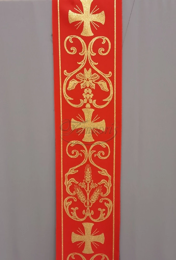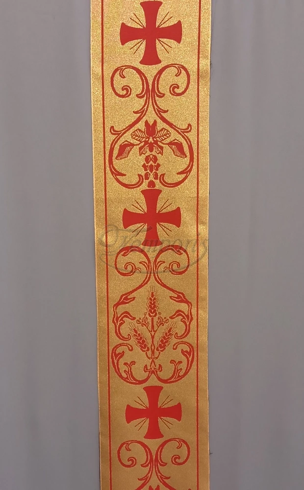 Motyw liturgiczny sprawia, iż stanowi idealny dodatek do ornatów lub innych szat sakralnych.