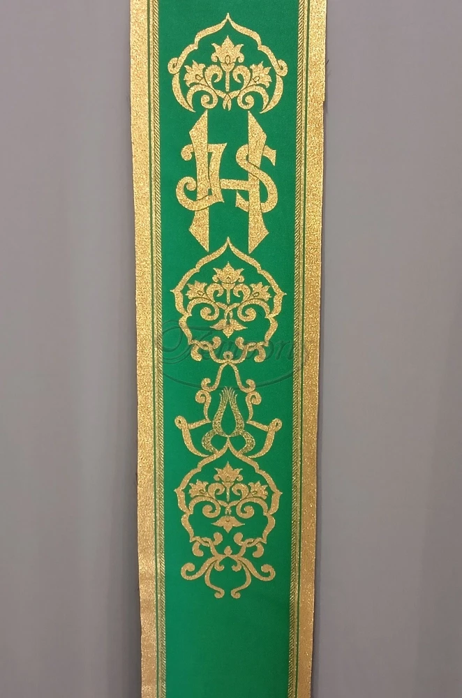 Motyw liturgiczny sprawia, iż stanowi idealny dodatek do ornatów lub innych szat sakralnych.