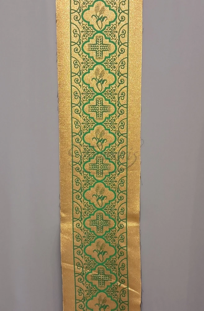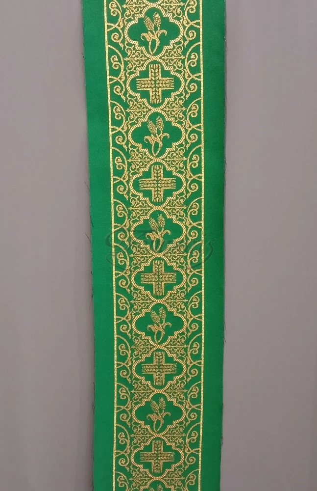 Motyw liturgiczny sprawia, iż stanowi idealny dodatek do ornatów lub innych szat sakralnych.