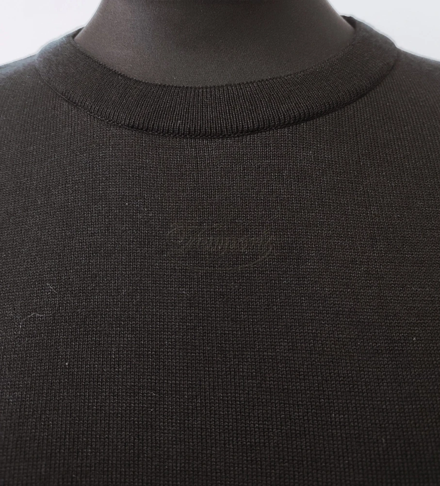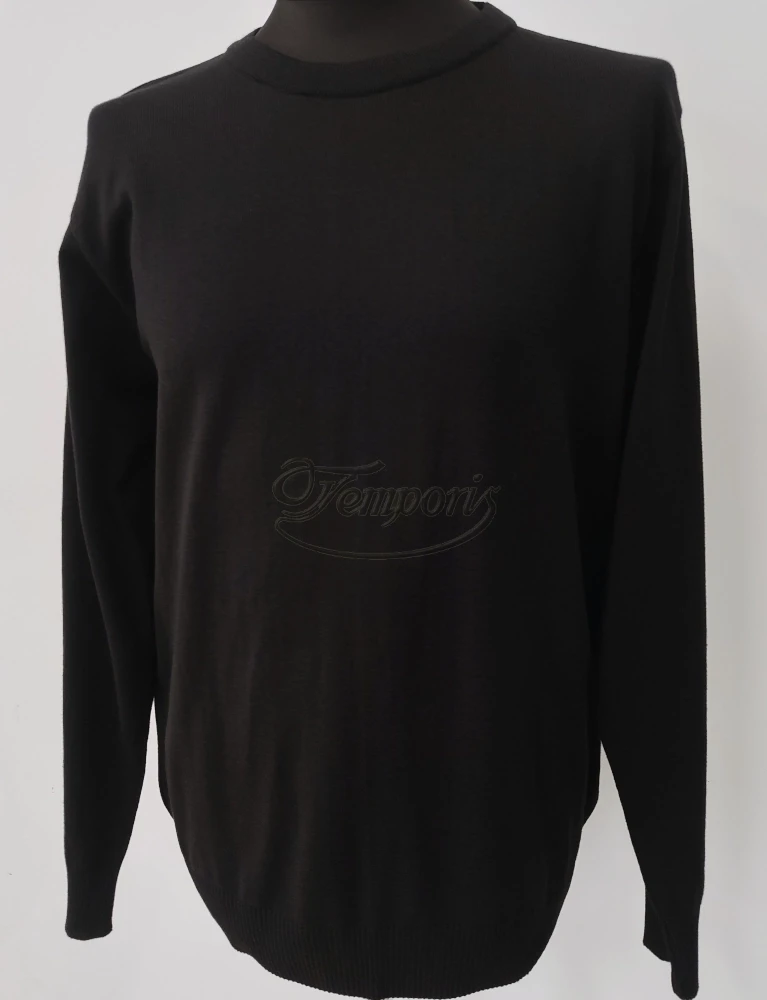 Czarny, klasyczny sweter z okrągłym dekoltem.