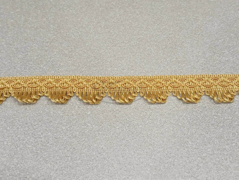 Ozdobna taśma dziana w kolorze miodowym wykonana z poliestru.