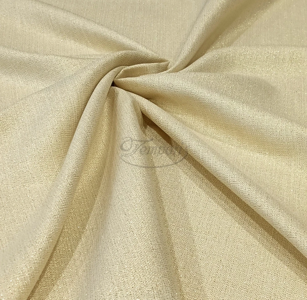 Tkanina błyszcząca o splocie płóciennym poprzetykana złotą nicią.