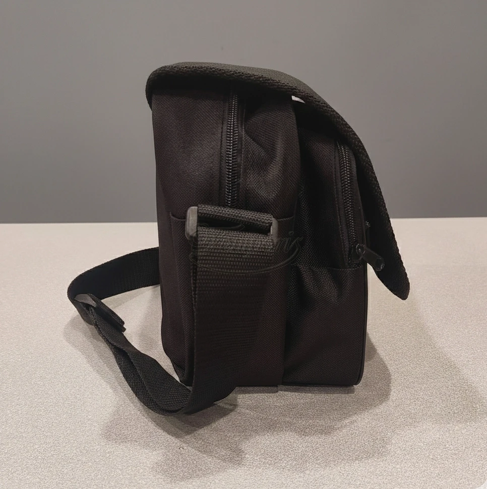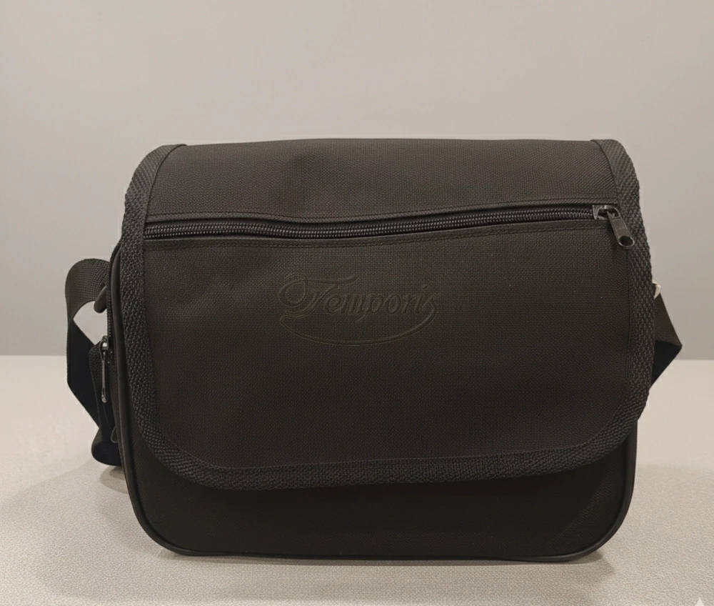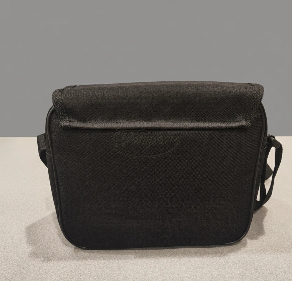 Wykonana z wytrzymałej tkaniny syntetycznej Codura, klapa wykończona lamówką.