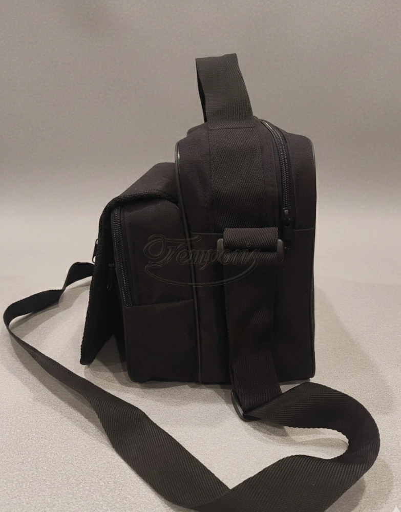 Wykonana z wytrzymałej tkaniny syntetycznej Codura, klapa wykończona lamówką.