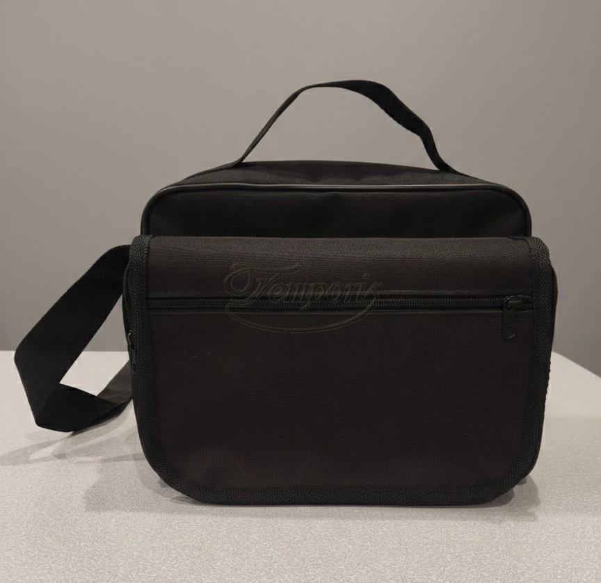 Dwusekcyjna torba z rączką i regulowanym paskiem.