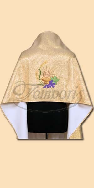 Welon naramienny do błogosławieństwa Najświętszym Sakramentem z haftem i klamerką.