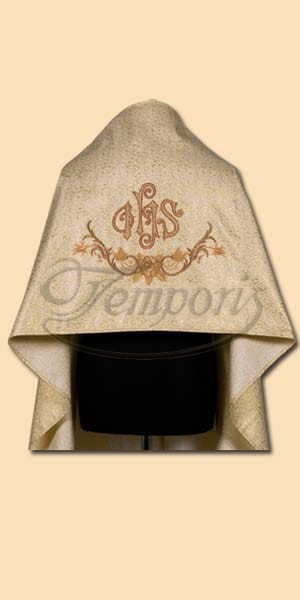 Welon naramienny do błogosławieństwa Najświętszym Sakramentem z haftem i klamerką.